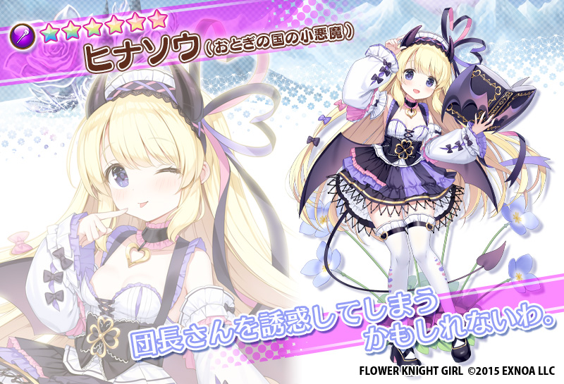 本ブログに使用しているゲームの画像・情報の全ては以下の権利者より引用させて頂きました。 問題がある場合は削除いたしますので、お手数ですがご一報下さい。 『フラワーナイトガール』©︎2015 EXNOA LLC
