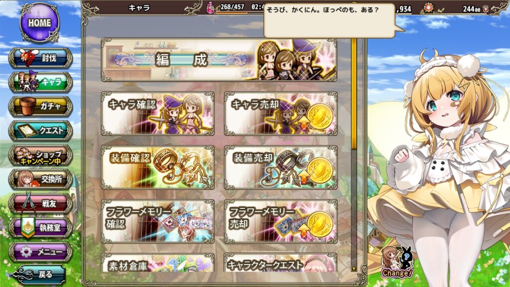 この任命権を使うと、キャラ画面など一部画面でナズナさんの代わりに出てきてくれるようになります。