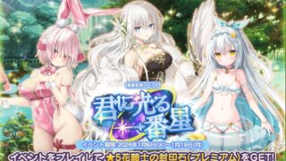 イベント 《花騎士》 君に光る一番星 前編 皆さま、こんばんは。 このような辺境まで、お越し頂き、ありがとうございます。今回も無事メンテナンスが終了し、新しいイベントが始まっております。ついにシクラメンちゃんが登場ですよ!そんな感じで、今回もダラッとご紹介していきたいと思います。 君... 2026.01.06 イベントフラワーナイトガール